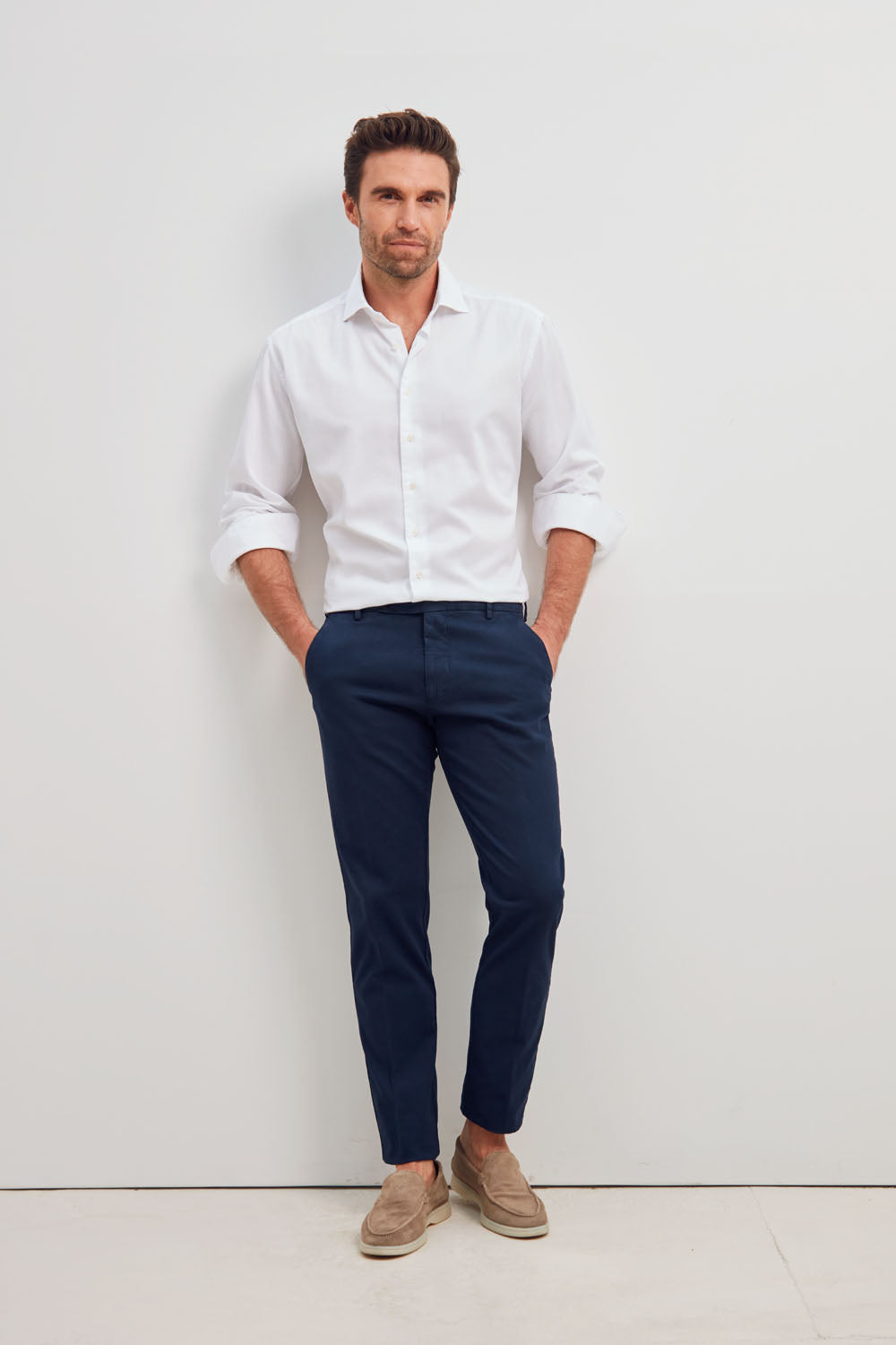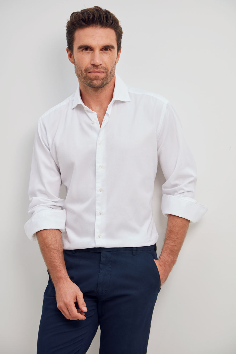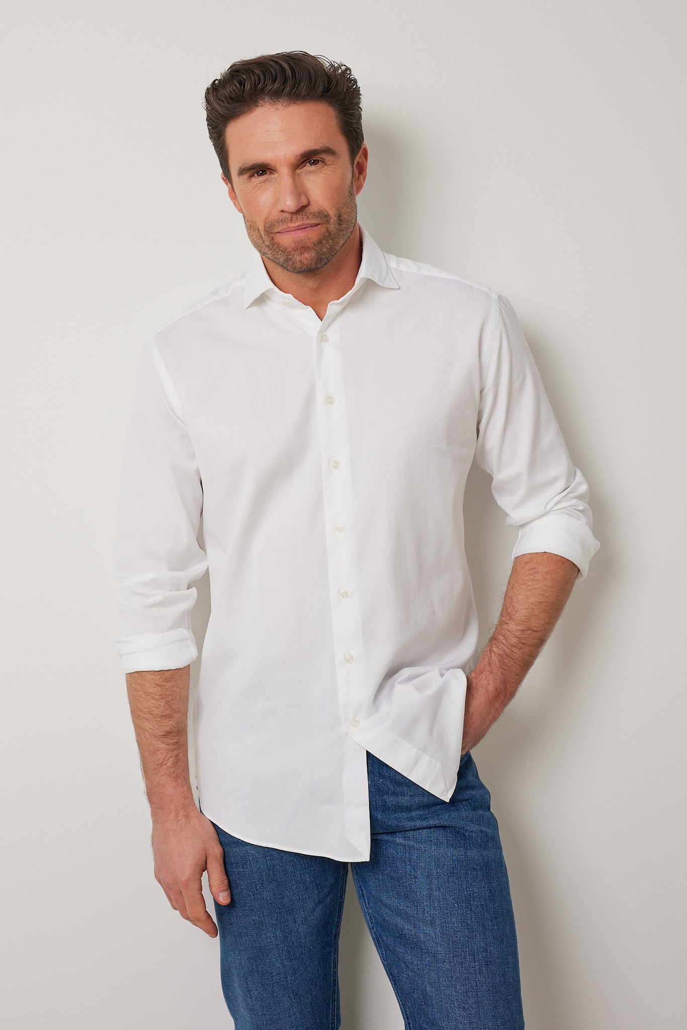 Classic Fit Weiss Twill Gewaschen