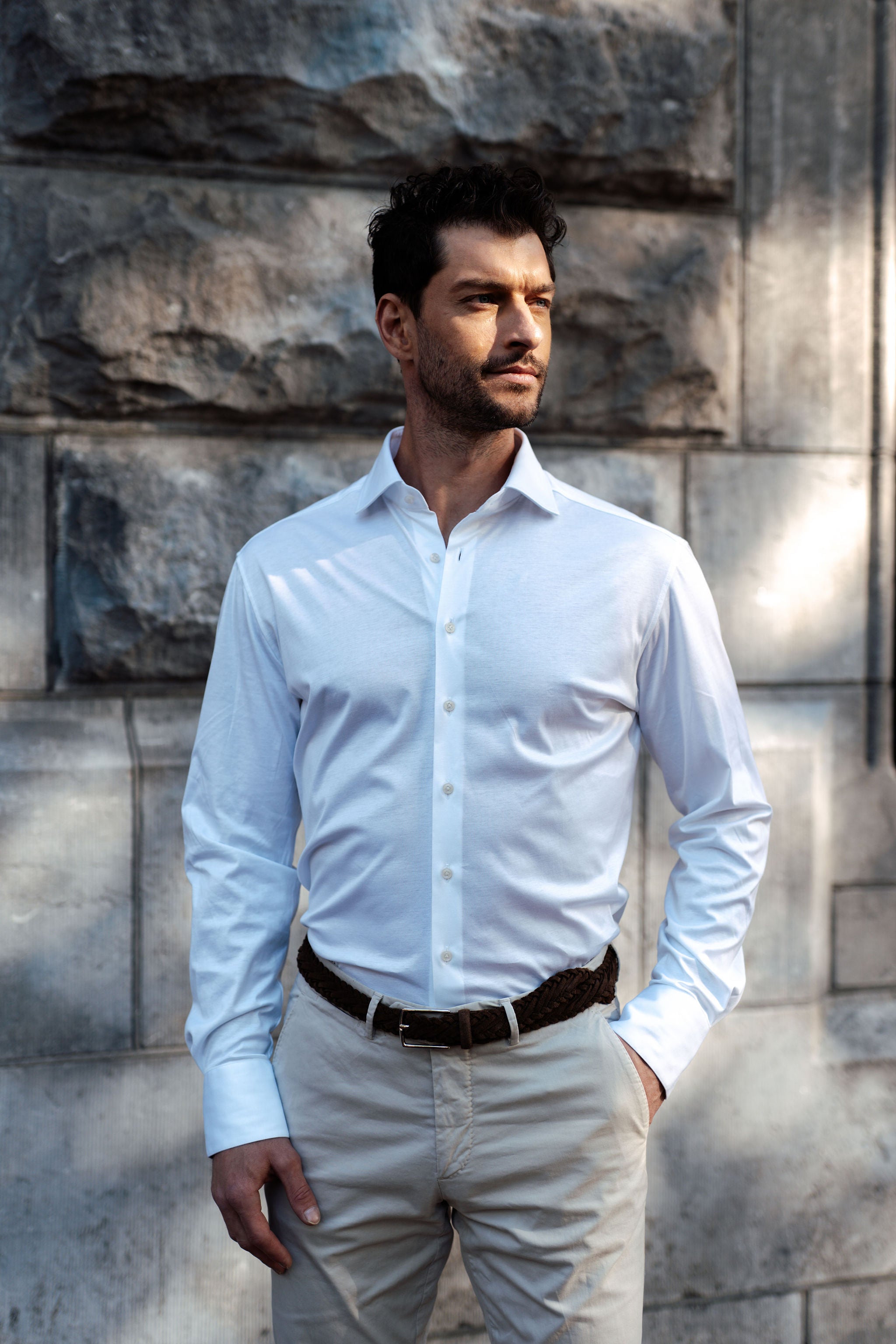 Slim Fit Weiss Stretch mit Doppelmanschette