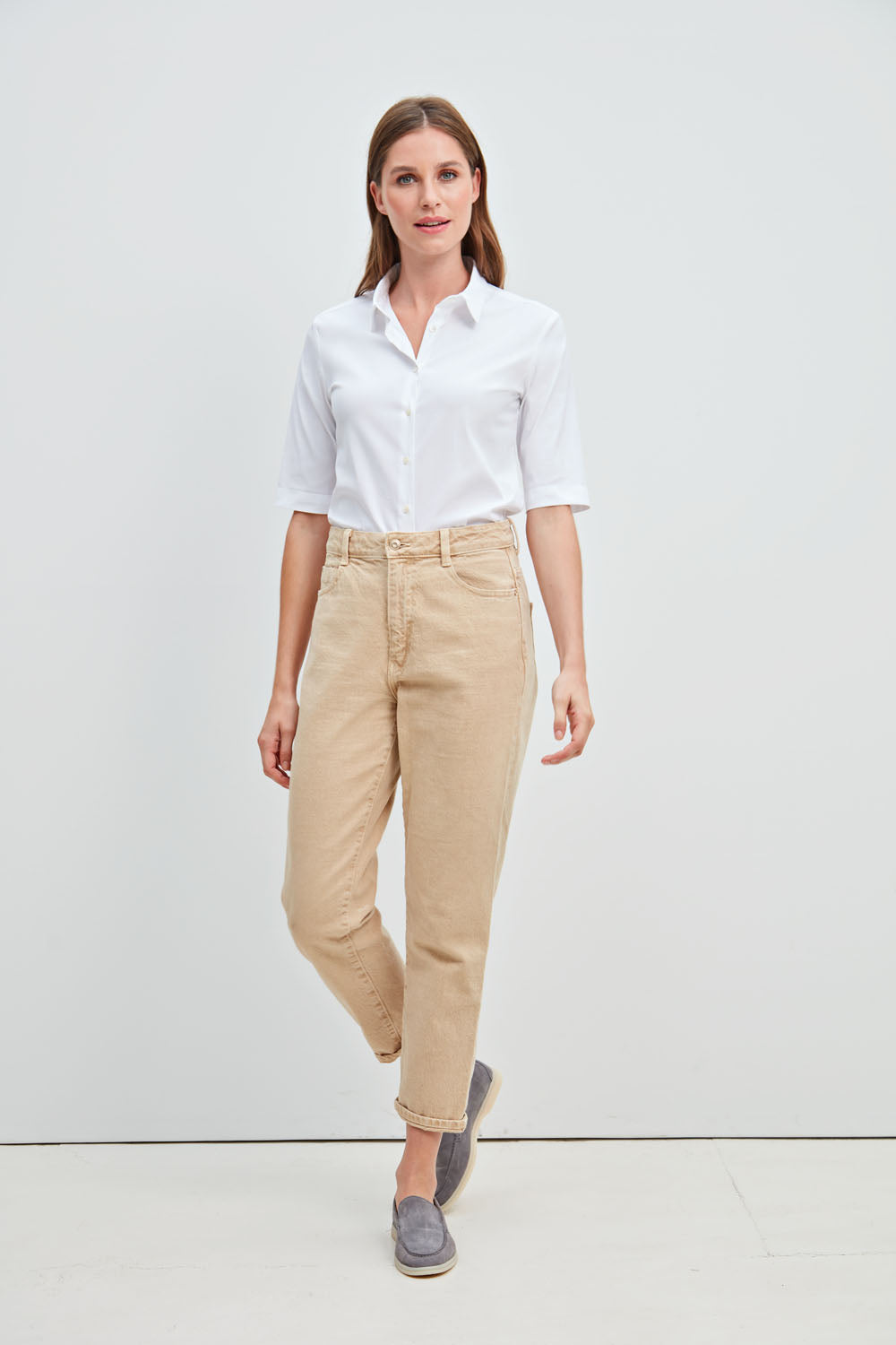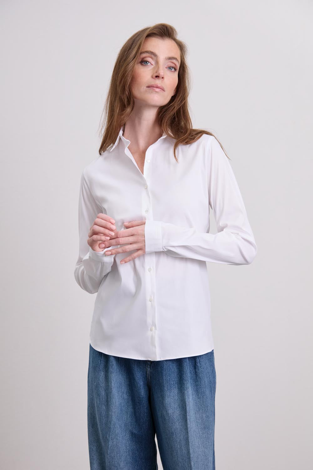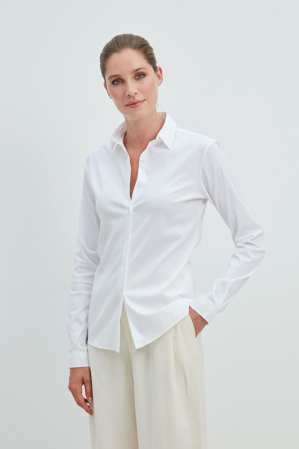 Rosa Stretchbluse Kurzarmbluse Weiss