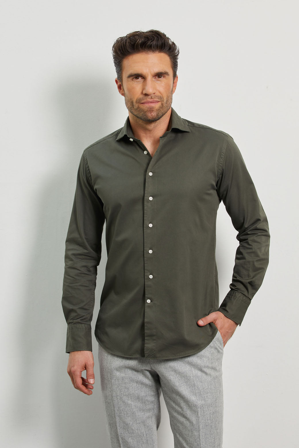 Classic Fit Gewaschen Twill Olive