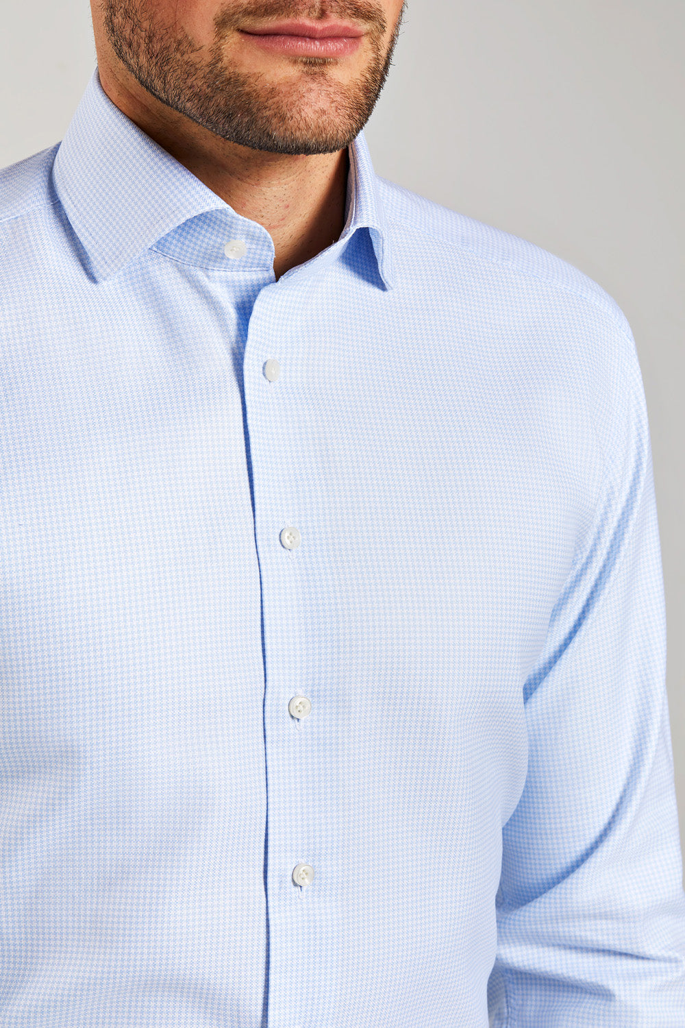 Classic Fit Hellblau Pepita Extra Lang